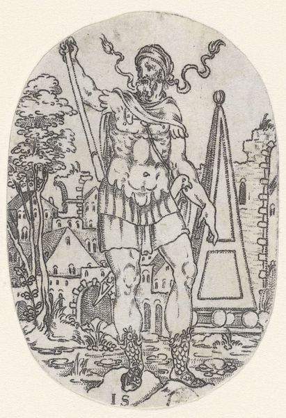 Curator: Looking at Arthur Rackham's 1911 drawing, “The horn, at the gate of the Barbican tower, was blown with a loud twenty-trumpeter power," I'm immediately struck by its unsettling yet whimsical tone. What do you think? Editor: It's undeniably intriguing. I see a real tension here, between the obvious fairy tale elements, the satyr-like figure blowing the horn, the dragon-like tail... and something darker, almost a challenge to traditional power structures lurking beneath the surface. Curator: Precisely. Rackham, drawing on influences of symbolism, often explored the undercurrents of society through the lens of folklore. Notice how the impish character's stance is aggressive. The horn seems to serve as a call to arms, but against whom? Editor: I find myself thinking about how illustrations, particularly in children’s books, can be used as propaganda, almost. What values are being promoted by casting *this* kind of character in the role of the noisemaker? And what message is being sent by placing him "at the gate?" Are we supposed to be inside the city, threatened? Or outside, rallying to get in? Curator: It's tempting to interpret that symbolically. Consider how fantasy has always served as a safe space for social critique. The hornblower could be seen as disrupting the status quo of the "Barbican tower"—perhaps a metaphor for existing hierarchies— with that “loud twenty-trumpeter power," it almost screams disruption! Editor: The way Rackham renders this fantastical setting also warrants attention. Look at the deliberate textures. He mixes ink, watercolor illustration, and colored pencil. This brings us to ponder his relationship with industry itself, illustrating for the masses… Curator: The materiality further enhances that tension you pointed out earlier. And to your point about industry, we also need to look into the Victorian era where fantasy illustration had a clear social standing that went with gender roles. We may never be certain of Rackham’s intent, but through analyses, we're invited to reconsider our own perspectives on what is ‘heroic’, ‘monstrous’, and where those lines blur within power dynamics. Editor: Indeed. Art challenges us not merely to observe, but to interrogate. "The horn, at the gate..." invites such inquiry.