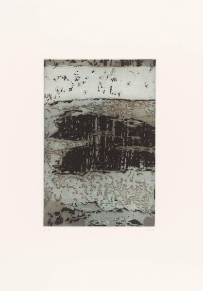 Editor: This untitled print by Christopher Le Brun in the Tate collection evokes a sense of foreboding. I’m curious about the symbolism present in the work. What imagery do you see emerging from this composition? Curator: The stark contrasts and almost architectural forms suggest a powerful gateway or perhaps a fragmented memory. Note how the vertical strokes could represent pillars, symbols of strength and stability but also potential barriers. Does it remind you of any particular myth or archetype? Editor: It brings to mind images of the underworld or perhaps a shrouded temple. The ambiguity is compelling. Curator: Precisely. The emotional weight is carried by these archetypal forms. Le Brun is tapping into a collective unconscious, using these symbols to evoke a sense of mystery and the unknown. Editor: That's fascinating. I hadn't considered the connection to collective memory. Thank you. Curator: My pleasure. Consider the persistence of such imagery across cultures. It speaks to our shared human experience.