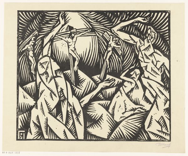 As in a metamorphosis, the figure of a dancing Death seems to rise up out of the portrait of the artist with a hunchback. During the phase when Kirchner suffered from paralysis of the hands, he was unable to break areas of any appreciable size out of wooden blocks. The resistance offered by the material, however, enabled him to cut lines into the surface with a V-parting tool as steadily as with a drawing utensil. This print is accordingly defined for the most part by white (non-printing) lines.