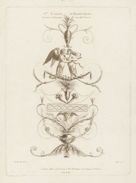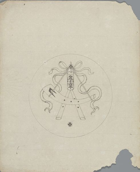 Editor: We're looking at "A Winged Genius Hovering Over a Globe, Indicated by a Pair of Circular Arcs," a pencil drawing on paper created between 1743 and 1809 by Nicolai Abildgaard. The delicate lines and somewhat unfinished quality give it an ethereal feel. How do you interpret the artist's choices in terms of composition and technique? Curator: I appreciate your initial observations regarding the ethereal quality, directly linked to the artist's technique. Note how the figure’s dynamic pose, coupled with the globe’s rudimentary depiction, generates a fascinating tension between movement and stasis, precision and ambiguity. Do you observe anything in the treatment of light and shadow? Editor: It looks like he only hinted at shading, perhaps to emphasize the form, rather than volume? I see the faintest marks inside the globe, and small darker marks under the angel. It almost feels as though he wants us to focus on the overall design rather than minute details. Curator: Precisely. Consider how Abildgaard strategically uses line weight and density. Observe the thicker lines that delineate the figure's contours versus the faint suggestions of the wings. Notice also the strategic placement of the figure in relation to the globe and frame. In what manner might this deliberate imbalance of detail create visual tension and direct our gaze? Editor: It draws attention to the genius’s energy against the flatness of the globe, perhaps highlighting the contrast between the ideal and the real, or the ethereal and the grounded. I didn’t notice it until you asked. Thanks! Curator: And by reducing the globe to bare arcs, the work foregrounds the central tension within its construction: how Abildgaard explores ideas of form, structure, and dynamism solely through a visual language of lines, tone, and strategically deployed detail. A fascinating work.