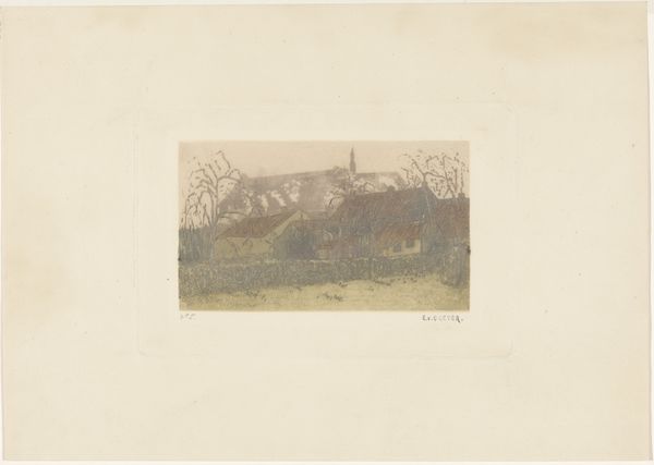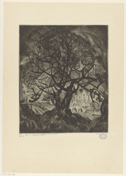 Lodewijk Schelfhout made this print, called "Boerderij" or "Farm," sometime around 1915. It's all about the push and pull between light and shadow, isn't it? You can see how Schelfhout used these delicate lines to carve out shapes and describe light. The bare trees reach into the sky, their branches a jumble of marks. See how the textures create depth, so you can feel the rough bark, or the soft glow of the sky? Notice the road, winding into the distance. It’s a simple mark, but it gives the whole image a sense of space, like you could step right into it. It reminds me a little of Van Gogh's landscapes. Both artists, in their own way, capture the world with a very particular intensity. Art's not about nailing down one single meaning, but about embracing the possibilities, opening up new ways of seeing and feeling.