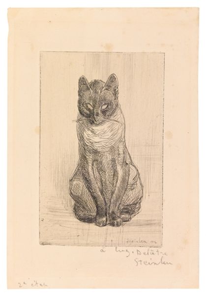 Théophile Alexandre Steinlen etched this Siamese cat around 1900, and with it, he taps into a very old fascination. Consider the cat: revered in ancient Egypt, associated with the goddess Bastet, and later, a figure of both allure and suspicion in medieval Europe. Steinlen’s cat sits erect with piercing eyes, embodying a sense of mystery. It is a symbol that transcends time, carrying cultural baggage. Think of the feline form reappearing across art history, from ancient sculptures to the canvases of the avant-garde. Here, in Steinlen’s image, the cat’s piercing eyes are not merely a visual detail, but a focal point that engages us. The image evokes a sense of being watched, of something lurking beneath the surface. It reminds us that symbols evolve, and the cat, in its many guises, continues to prowl through our collective imagination.