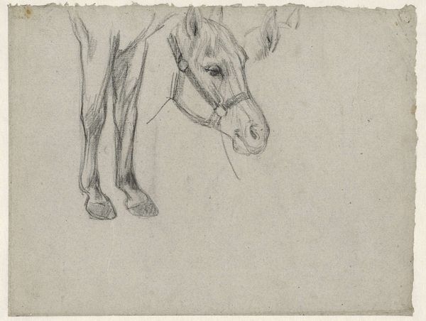 George Hendrik Breitner made this drawing of a horse's head with graphite on paper. It's a simple pairing of materials, but that doesn't mean it's without interest. Graphite is a material that lays down on the page with the slightest pressure, allowing the artist to produce thin lines or broader shaded areas. The horse in this study is carefully modeled with a play of light and shadow. We can imagine Breitner, an important figure in the Amsterdam Impressionist movement, quickly capturing the essential features of the horse's head, conveying a sense of its weight, texture, and form. The artist's technique is direct, almost casual, as though the image was captured in a fleeting moment. It's also worth noting that drawings like this are typically considered preparatory works, studies for larger paintings. Yet, they're often prized for their own inherent qualities. Appreciating the materials, making, and context allows us to move beyond traditional distinctions between fine art and craft and understand an artwork’s full meaning.