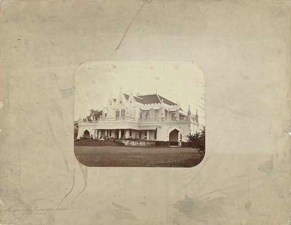 Editor: This is Paul Vanderbilt's "Shady Hill, Cambridge," an etching. The detail is really striking, but the color is so muted. What can you tell me about it? Curator: Consider the labor involved in etching. The acid's bite, the press's force… it's a physically demanding process. This house, perched atop the hill, speaks to a certain class and their means of material production. Editor: So you're saying the image's subject matter is also a commentary on labor and resources? Curator: Precisely. The very act of creating such a detailed print points to the artist's own engagement with production, echoing the economic realities that allowed for the house itself. Editor: That gives me a lot to think about regarding art as a form of material and cultural labor. Curator: Indeed. Seeing art as a product of specific processes expands its meaning significantly.