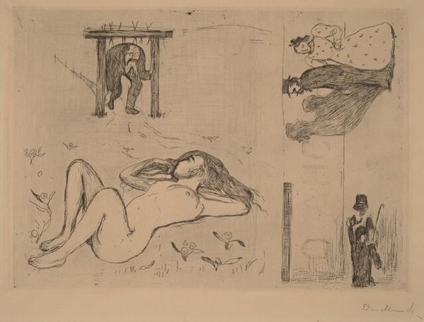 Editor: Jean-Louis Forain's pencil drawing, "Discharged from Military Service," believed to be from between 1914 and 1919, really evokes a somber mood. The quick, expressive lines give a sense of unease and uncertainty. How do you interpret this work within the historical context of its creation? Curator: This piece speaks volumes about the socio-political landscape following World War I. Forain, known for his social commentary, likely created this in response to the trauma and disillusionment experienced by soldiers returning home. Notice how the discharged soldier seems lost, almost vulnerable, while the figure behind him offers little in the way of obvious emotional solace. The very act of shedding the uniform represents a dramatic shift in identity, a reentry into a society forever changed by war. Editor: So the work challenges a purely heroic view of war, then? Curator: Precisely. Consider the intended audience and where something like this would be displayed. By portraying a soldier in such a state of undress and visible mental discomfort, Forain challenged prevailing narratives. Is he celebrating a return, or stripping the figure bare? Is he instead, laying bare society's expectations against the soldier's interior turmoil? The pencil drawing and sketchy, unrefined marks suggest instability, perhaps even mirroring the instability felt within French society at the time. Editor: It’s interesting how the rawness of the medium contributes to that sense of instability. It feels more like an immediate, unfiltered response than a carefully constructed statement. Curator: Exactly! The drawing itself becomes a form of political expression. The rapid sketch, combined with the social subject matter and historical background makes Forain’s criticism difficult to ignore. Is there anything else you see within that socio-political lens? Editor: Thinking about it now, I see how this artwork uses a moment of quiet intimacy to reflect larger societal shifts after a huge political event, the First World War. Thanks so much for clarifying the cultural nuances of this poignant sketch. Curator: And thank you for helping shed light on those visual cues and nuances. Considering both makes it so much more meaningful.