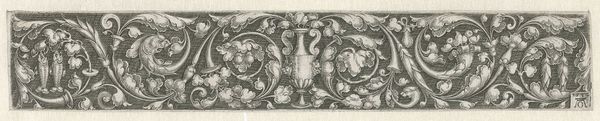 This is “Vignet met twee bladranken,” made by Heinrich Aldegrever, a German printmaker, and is etched in metal. During the Reformation, artists navigated a changing religious and social landscape. Aldegrever, associated with the Anabaptist movement, infused his art with humanist ideas. His personal beliefs are reflected in the symbols and allegories he chose. The dimensions of the work and medium create a sense of intimacy, inviting close inspection. This challenges traditional representations, fostering new narratives and interpretations of familiar themes. The intricate details encourage viewers to consider the cultural, intellectual, and religious context of the artist. Aldegrever’s printmaking reflects the societal and religious tensions of his time, while offering us a glimpse into his personal beliefs and the broader cultural conversations taking place.