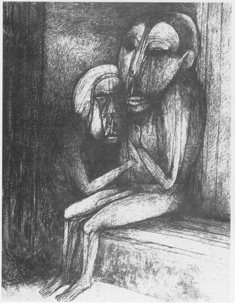 Here we see an untitled drawing by Zdzislaw Beksinski. The artwork is defined by an intricate network of lines, crosshatching that builds tone and volume in a stark monochrome palette. The graphic quality suggests an intimate, almost claustrophobic space. Notice how the figures challenge conventional beauty with their distorted anatomy. Beksinski has rendered the female figure with elongated limbs and emphasized skeletal structure. We can see the bold, unflinching approach to form in the figure that destabilizes our notions of perfection, inviting a deeper contemplation of existential themes. The tension between representation and abstraction is also apparent here. The image invites us to question the nature of identity. It's clear that Beksinski's visual language transcends mere aesthetic conventions, prompting us to engage with art as a complex, philosophical discourse.