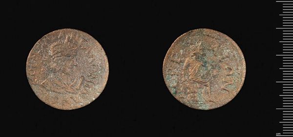 Editor: Here we have a coin of Perge under Valerian I, currently residing at the Harvard Art Museums. Its worn surface sparks my curiosity about its past. What can you tell us about the symbolism embedded in such a small object? Curator: A coin is never just currency; it’s a portable symbol. Valerian's image, even in this state, projects authority and Roman power. Consider the potential cultural memory it invokes. What stories did it tell then, and what does its survival tell us now? Editor: So, the imagery acted as propaganda, reinforcing Valerian's rule? Curator: Precisely! And beyond that, it tied the individual to the vast Roman empire. Each coin served as a miniature monument, embodying Roman identity across vast distances. These symbols were deliberately circulated. Editor: It’s amazing to think how much cultural weight such a small object could carry. Curator: Indeed. It prompts us to consider how symbols shape our understanding of power and belonging, even today.