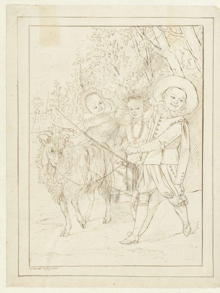 This drawing of a human pyramid by Carel Adolph Lion Cachet presents us with a fascinating study of figures, each carrying symbolic weight. The pyramid form itself, an ancient symbol of aspiration and the connection between the earthly and the divine, appears throughout history from Egyptian monuments to circus acts. Note, however, how the figures here are not idealized; they seem strained, their expressions ambiguous, evoking a sense of precariousness. The pyramid as a symbol is turned on its head. Consider the motif of the human figure used as a structural element, a living caryatid. This motif has roots in ancient architecture, reappearing in Renaissance art and beyond. The face, often serene, is now contorted, reflecting the psychological burden of supporting the structure. This reflects how the collective unconscious imprints itself on the cultural production, where primal urges intertwine with societal structures. Such enduring symbols remind us that art is not just about what we see, but about what lies beneath.