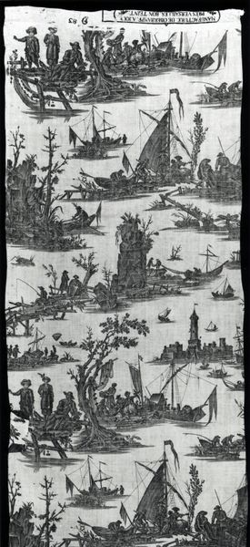 This cotton pictorial print was made by the Oberkampf Manufactory in France, a country which in the 18th century had a deep fascination with Asian cultures. This phenomenon, known as “chinoiserie,” was part of a larger pattern of cultural appropriation that occurred during the colonial era. The print depicts an idealized vision of the East, one that reflects European fantasies more than Asian realities. Through this lens, we can see how the print served the desires and tastes of a European audience, one that longed for exoticism but lacked authentic cultural exchange. The scenes evoke a sense of harmony and tranquility, yet they simultaneously expose the power dynamics inherent in cultural representation. The print stands as a material artifact that not only reflects the aesthetics of its time but also reveals the complex interplay between perception, power, and cultural exchange.
