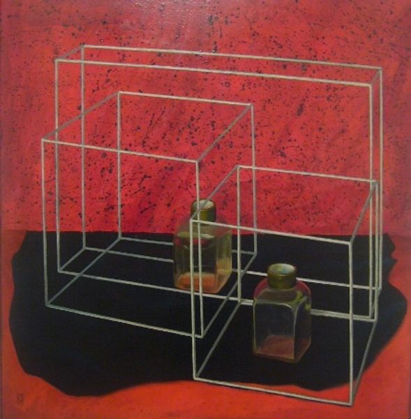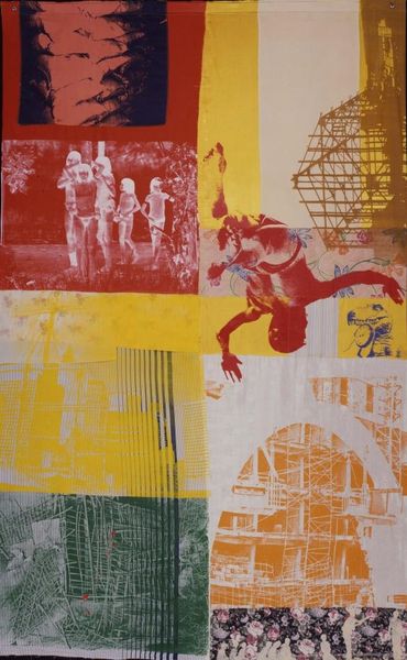 Editor: This is Amin Aghaei's "At the Karun Bank" from 2012, a painting that immediately strikes me with its surreal and almost dreamlike quality. What's your interpretation of this scene, with these figures perched atop what appears to be a draped object, disconnected from their discarded sandals below? Curator: The artist seems acutely aware of how we build meaning through materials and their presentation. Consider the draping: It simultaneously conceals and reveals. What's underneath? The visible labor, the process of constructing this platform, is masked, forcing us to question what "bank" really signifies here. It's less a stable financial institution, and more an ephemeral space, made precarious. Editor: I hadn't thought about the covering hiding labor. Does that speak to the tradition of painting, maybe hiding its own creation? Curator: Precisely. Aghaei could be making a subtle commentary on the art world itself – the way we often consume finished products without considering the infrastructure, the human effort, that brings them into being. The figures are positioned almost as spectators, highlighting the act of looking and the constructed nature of spectacle. Editor: So you're saying the labor behind the artwork itself, and potentially the physical labor of those on top are interconnected? Curator: Exactly. And the rope – what is it anchoring? It suggests a connection, a dependency, but to what? It is visually striking that is vanishes out of frame. Consider those scattered sandals; they further underline a sense of interrupted activity and displacement. Editor: It’s fascinating how much the materials – the cloth, the rope, even the paint itself – contribute to the story. It shifts from a simple image of people by a river, into a question of labor and value. I hadn't considered the social commentary at all. Curator: And that's the beauty of art; its ability to be multifaceted!