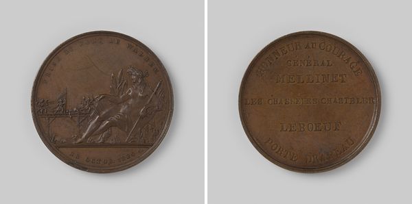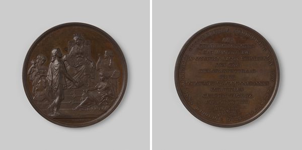 Editor: This is an engraving titled "Oath-taking on the French Republican Constitution of 1793" by Claude Duvivier, created in 1793, using metal and bronze. The first thing that strikes me is how this little object tries to convey such grand ideas through symbolism and text. How do you interpret this work? Curator: It’s fascinating to view this piece through a socio-political lens. Here we see how revolutionary ideals were disseminated and solidified through commemorative objects like this. This medal, created during the height of the French Revolution, becomes a powerful piece of propaganda. Consider how this tiny object sought to create a shared national identity. How effective do you think such pieces were? Editor: That’s interesting, I hadn’t considered it as a tool for building national identity. I suppose that makes sense considering it's small and relatively easy to reproduce. I think this was somewhat effective, though, perhaps, more so among those already sympathetic to the revolution. How did institutions like museums at the time play a role in shaping perceptions of such objects and the revolution itself? Curator: Museums and public spaces were indeed instrumental in shaping perceptions. Revolutionary art wasn't confined to galleries. It took to the streets and squares to engage the populace directly, making art not just a spectacle, but an integral part of political life. Did you notice how the piece attempts to make the document sacred? Editor: Now that you mention it, there's a deliberate classical style in the engraving to convey authority, and that does come across. Thank you; that changes how I perceive this artwork now. Curator: Indeed! Understanding its role in the larger social and political theater gives it an entirely new significance. It is, after all, an artifact produced within a tumultuous cultural landscape.