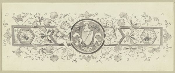 Wilhelm Steinhausen made this vignette, with an unknown medium, for an entrance, and the date of the work is unknown. Looking at this design, we might consider the image as a piece of the broader aesthetic and cultural milieu of late 19th-century Germany. Notice the clean, precise lines and the symmetrical arrangement, which evoke the kind of formal order favored at the time, not only in art, but also in urban planning and industrial design. This ornamental sketch may have originally been part of the larger architectural project. Its location in the entrance suggests a cultural institution that had a sense of the value of this work. The trumpet and laurel leaves that surround it are traditional symbols of glory and accomplishment. These motifs were often chosen to celebrate Germany's ascendance to the world stage. To fully understand this vignette, we would need to delve deeper into the cultural and institutional history that informed Steinhausen’s artistic choices.