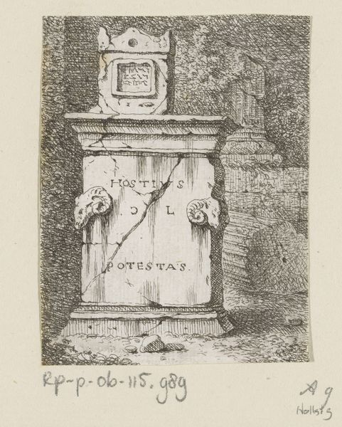 Curator: Here we have Thomas Hardwick's "Sketch of a Classical Pedestal," dating from between 1776 and 1779. Hardwick rendered this architectural detail using pencil, and it’s currently housed here at the Met. Editor: My initial impression is one of careful study—a light but precise hand capturing the weight and ornamentation of this classical form. There's a real sense of reverence for the artistry of the original pedestal. Curator: Absolutely. The process of producing a sketch like this underscores the vital role of drawing in architectural education during the late 18th century. It's about understanding construction through direct engagement with materiality—pencil on paper, mimicking stone. And the availability of pencils allowed artists to experiment and make revisions that may not be visible. Editor: Precisely. What stories do you think such architectural forms were intended to convey? I notice the rams' heads, the laurel wreath, the cherub… each element loaded with symbolism related to status, power, and possibly mourning given the funerary inscription, which honors Julia. Who was she in relationship to Hardwick and those viewing his works? Curator: Those symbolic elements speak directly to the revival of classical ideals that influenced so much architecture during this period. It reflects the labor needed to source marble or suitable stone, carve it to such detail, and move it from quarries in places such as Italy. I'm also curious about where the sketch fits within Hardwick's practice. Was this sketch made in preparation for a construction or just pure contemplation of architectural history? Editor: That very specific material production shapes societal relations and belief systems. Perhaps these forms were tied to wealth, or even exploitative forms of production through colonized peoples. Curator: Definitely a point well worth further study. What the history of art allows us to do is imagine alternate approaches for living or seeing art. We begin to interrogate relationships by making those subtle nuances visible through an analysis of drawings like Hardwick’s. Editor: And from understanding this context and those connections we can develop better methods for shaping inclusive architectural systems and futures for the people living with and within these shapes. Thank you for sharing!