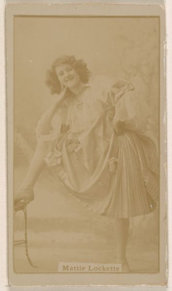 Curator: Here we have "Actress in studio reclining against prop trees," a promotional print from the Actors and Actresses series created by W. Duke, Sons & Co., sometime between 1890 and 1895. It employs photography to create a portrait, and the sepia tone evokes a sense of nostalgia, doesn't it? Editor: Indeed. My first impression is that the composition seems contrived. It’s an odd juxtaposition of artificiality—painted backdrop, studio props—attempting to emulate nature. The resulting tonality reinforces the image's overall staged effect, typical of such commercial portraiture. Curator: Precisely. Semiotically, we can decode layers of meaning. The reclining actress suggests leisure, even pastoral fantasy. However, the visible artifice betrays the image's commercial purpose: to sell cigarettes by associating them with aspiration and glamour. Editor: Agreed. The means of production are so revealing. Consider the laborious process behind what appears as a fleeting moment. The photography itself, the printing techniques, and the vast distribution network used by Duke's cigarette company speak volumes about labor, mass production, and targeted consumerism. This portrait is, in effect, a material commodity. Curator: Furthermore, note the delicate arrangement of lines: the curvature of her hat mirroring the foliage, and how her pose draws the eye toward the center of the composition, creating visual harmony amid the apparent artificiality. There’s a structured elegance that belies its nature as mere commercial ephemera. Editor: However, this so-called ephemera tells a critical social story. The choice to depict actors, especially women, directly ties to Victorian conceptions of work, display, and spectacle. We see not only a product but also an insight into celebrity, advertising, and the construction of gender roles within a specific industrial context. Curator: Very astute observation! Considering these layers allows us to see it for more than just a pretty picture. The interplay between the artifice and constructed reality, framed within early advertising strategies, encourages critical consideration about commercial images and consumer desires. Editor: Ultimately, a re-examination of materials and labor enriches what might be overlooked as simple advertising. Instead, we find an insightful microcosm revealing essential facets about an emerging capitalist, consumer culture.