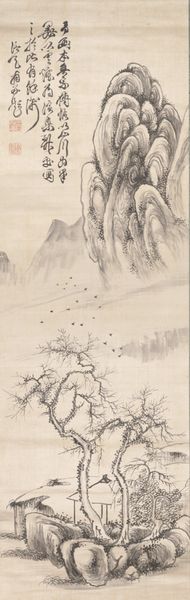 Curator: Let’s turn our attention now to "Snow Landscape," a lovely ink drawing by Hashimoto Gahō, likely created between 1885 and 1889. Editor: What strikes me immediately is the stillness. A kind of hush seems to blanket the scene. It feels more like a memory of winter than winter itself. Curator: Indeed. Gahō masterfully evokes a sense of serene isolation. It’s fascinating how much emotion he conveys with what is, in essence, a very limited palette. It's that subtle power of ink, isn't it? Editor: Absolutely. The gradations are so nuanced, the barest suggestion of texture and form. And the composition pulls me in. I think it might be linked to familiar East Asian symbols: mountains, water, trees… together they symbolize longevity, stability, but there's a prevailing, almost dream-like melancholy. Curator: And what is really stunning is how that cultural resonance fits within a shifting moment in art history: Gahō was attempting to adapt traditional styles and techniques in a modernizing Japan, a struggle that always fascinates me, because one sees so clearly where tradition is celebrated, broken down, rebuilt… Editor: Yes, exactly. There's this interesting tension between the deeply rooted iconography and the almost Western atmospheric perspective. Those distant mountains fading into the mist create a really profound sense of depth, which contributes to its compelling symbolism. I like to think it all has to do with an intersection with self and nature. What is the artist looking for in that isolation? What did he want the viewer to ponder? Curator: It certainly offers plenty to reflect on! Its presence here in the Metropolitan Museum reminds me that the emotional pull of these simple images spans centuries and cultures. Editor: A whisper across time. It definitely invites us to consider the enduring power of minimalist expression, that's for sure!