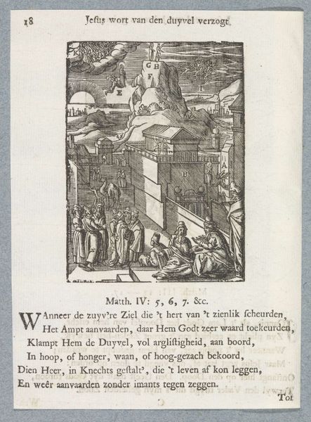 Editor: This engraving, "Christus op het Loofhuttenfeest" from sometime between 1629 and 1740 by Christoffel van (II) Sichem, depicts a scene crowded with figures, presumably the Feast of Tabernacles. I'm struck by how the architecture almost overwhelms the figures. How would you interpret this work? Curator: This image pulsates with cultural memory. Notice how the artist meticulously renders the scene, laden with symbolic import. The Feast of Tabernacles, or Sukkot, was and is a time of pilgrimage, a commemoration of the Israelites' journey through the desert, where they lived in temporary shelters. These structures, as you mentioned, are architecturally quite imposing, seemingly fixed in place. Why might the artist emphasize these fixed locations? Editor: Perhaps to suggest the enduring nature of faith? The solidity of the buildings contrasted with the temporary shelters… Curator: Exactly! These "temporary shelters," constructed anew each year, carry within them layers of history. It’s not just a visual document; the print allows the scene and symbolic meanings to be copied and distributed. That portability speaks volumes about the dissemination of religious ideas. Are you familiar with how the imagery of palms operates within this representation? Editor: It seems like many figures carry them, maybe indicating participation and joy during this celebration. Curator: Precisely! And beyond that, palm fronds were often linked to triumphs, royal entrances, even martyrdom. Here, its dual function speaks of reverence and, in hindsight, Christ's ultimate destiny. A somber reminder amidst the revelry? Editor: I hadn't considered that duality before. It's like a hidden premonition within a scene of celebration. Curator: The layering of those associations is something powerful. It demonstrates how seemingly simple images can resonate with a potent cultural symbolism across eras. Editor: I'll definitely keep that in mind moving forward. Thanks for sharing such valuable context!
