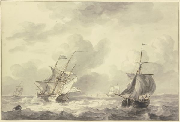 Willem van de Velde II created this pen and brown ink and gray wash drawing depicting Dutch ships, but we don’t know exactly when. Van de Velde was one of the great specialists in maritime painting during the Dutch Golden Age, when the Dutch Republic was at its height as a global trading power. The image creates meaning through visual codes, cultural references, and historical associations. We can consider how the geography of the Netherlands, a nation built on reclaimed land and reliant on sea trade, might have influenced the popularity of maritime art. The flags prominently displayed on the ships identify them as Dutch, symbols of national pride and commercial success. The level of detail with which Van de Velde has rendered the rigging and the hulls speaks to a deep familiarity with the technology of seafaring. Understanding such artworks requires historical research: looking at trade routes, shipbuilding techniques, and even the weather patterns of the time. Art like this reflects the social and institutional contexts that shaped its creation and reception.