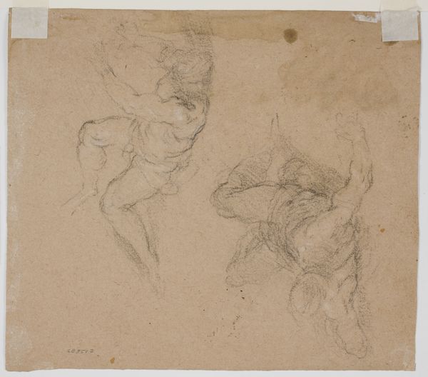 Curator: Here we have Jozef Simmler’s pencil drawing from 1850, “Sketches of Mary Magdalene to the composition ‘Entombment’.” It's a preparatory piece, giving us insight into the artist's process. Editor: The raw emotion is striking. Even in these early sketches, you can sense the figure's grief and anguish. It communicates mourning. Curator: Absolutely. Let's consider Magdalene's portrayal historically. Often, she is positioned in opposition: repentant sinner or devoted follower. I think Simmler, through these gestures and poses, offers a vision of nuanced understanding and feminine grief, breaking away from simple dichotomy. Her downcast gaze perhaps acknowledges historical societal sins of her time. Editor: The drooping head and downturned hands signify vulnerability and despair. Visually, they serve as signifiers deeply embedded in our understanding of human sorrow. You can find echoes in countless depictions of grief throughout art history. The pose speaks volumes across time. Curator: It's important also to acknowledge this as a work made by Simmler within very specific historical structures: class, patriarchy and art education and institutions that inform his gaze and inevitably are reflected in the creation, however sensitively rendered. The depiction itself may then carry historical meanings on what it signified in that society at the time and what social meaning it reproduces even if attempting to push the boundary or open new narratives. Editor: Even in a preparatory sketch, we can see the emerging iconography taking shape. The positions he considered here ultimately play a role in the visual memory of Magdalene’s sorrow at the Entombment. These marks have weight. Curator: And that weight resonates across generations, provoking continuous reflection. Perhaps it pushes us to ask, even now, how art is part of society reproducing and innovating upon old structures of social relationship and gendered position. Editor: Exactly. What starts as a private sketch becomes part of our collective visual language, an evolution. Curator: Thank you. I find these brief sketches full of historical presence but they challenge us also with questions about enduring impact.