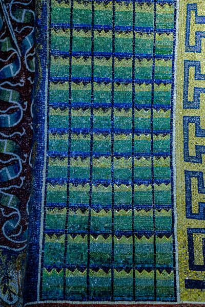Lalla Essaydi made this triptych, Harem #18, with photography, staging a scene with incredible patterning. It’s a process of layering, both in the making and in the seeing. The patterns feel endless, right? From the tiles to the textiles, she submerges her subject in decoration that both conceals and reveals. The blues are so present, they remind me of Matisse's interiors, but there's also something about the arabesque and calligraphy that feels very present, almost like it is painted onto the image. I keep coming back to the woman in the center, her gaze is very direct, and yet she blends in with the environment. That tension between visibility and invisibility is what makes it so compelling. It's like a conversation between photography and painting, where the surface becomes a space of cultural and personal reflection. Like Shirin Neshat, Essaydi also plays with notions of identity. It’s an echo chamber of ideas, both visual and conceptual.
