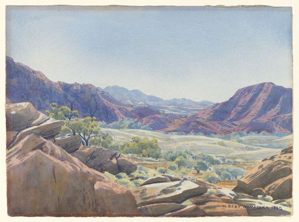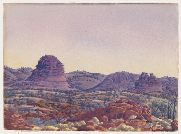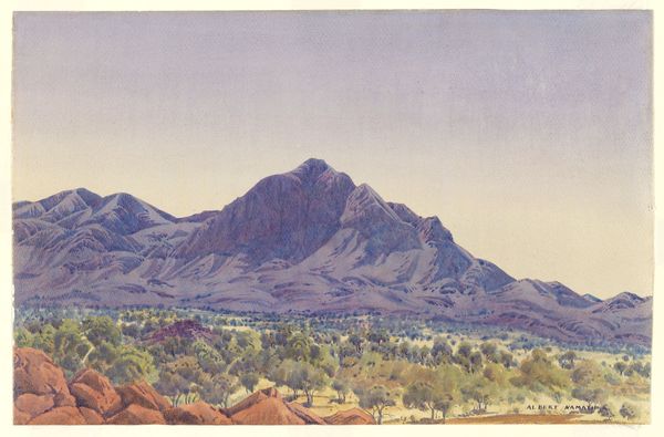 Albert Namatjira made "Sunrise on the James Range" with watercolor, and what grabs me first is how immediate the process feels. The brushwork isn't hidden, you can see the build up of colour that lets the light in around those looming forms. Looking closer, there's a push and pull between the soft washes of the sky and the sharper, almost etched details of the mountains. See how Namatjira uses these tiny, dry brushstrokes to define the peaks and ridges? It’s like he’s mapping out the terrain, one careful stroke at a time. I’m reminded of Cézanne, who was also obsessed with rendering the weight and mass of mountains. There's a real conversation happening between the seen and the felt, the observed and the imagined. It shows that a painting can be both a window onto the world and a record of the artist's own experience. There's no right or wrong way to see it.