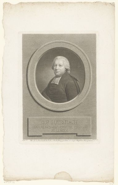 Editor: Here we have Johann Elias Haid’s "Portret van Christian Fürchtegott Gellert," an engraving from 1775 currently held in the Rijksmuseum. The figure seems so contained and almost austere. What do you see in this piece, beyond just a historical portrait? Curator: Ah, Gellert! Looking at this, I’m immediately drawn to the almost performative nature of portraits back then. It's like stepping onto a stage of powdered wigs and implied wisdom. Consider how carefully Haid crafts this image – it's not just about capturing a likeness. There's an intention to convey Gellert's character. Do you feel you get a sense of the sitter's personality from this print? Editor: Definitely. The Latin inscription mentioning "simplex, rectus, venustus" does influence that, suggesting a simple, upright, and charming character. However, I find that somewhat at odds with the rigidity of the pose. It's almost too perfect. Curator: Exactly! That tension, that subtle push and pull between the intended message and what the portrait actually conveys, that’s where the real intrigue lies. Remember that Neoclassicism was all about order and reason. Editor: I suppose they really wanted to portray ideal figures, didn't they? The perfection kind of sanitizes the subject. Curator: In a way, yes! Think of it as ancestor worship through aesthetics, almost deifying Gellert through perfect lines and idealized form. Isn't it curious how art reflects society’s aspirations, even when it glosses over the messiness of reality? Editor: That’s such an interesting perspective. I now look at it with new eyes and think about the image not as the truth, but an idealized snapshot for his fans to recall. Curator: And, perhaps, as a legacy that Haid wished to build with Gellert! Each line tells a silent story, each shade a forgotten intention. We learn from what we see, and what remains hidden.