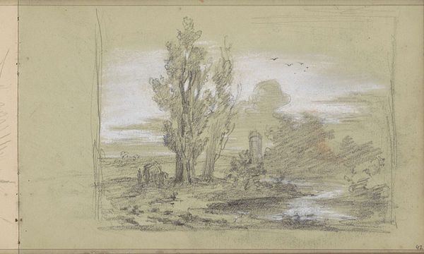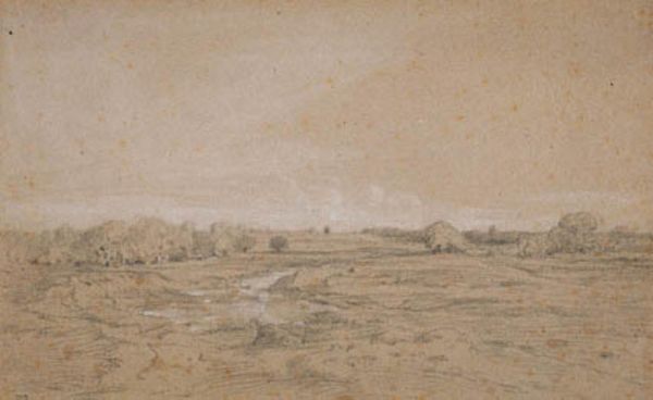 Constant Troyon made this drawing of a landscape with cows, a farm, and a mill in the 19th century using graphite and possibly other drawing media. Troyon, born in France, was known for his animal paintings, and this work reflects the growing interest in rural life and agricultural scenes during that time. The image depicts a peaceful countryside, possibly in France, where the Industrial Revolution was beginning to transform society. As cities grew and factories emerged, there was a nostalgic longing for the simplicity and authenticity of rural life. Artists like Troyon played a role in shaping this perception through their depictions of idyllic landscapes. The presence of a mill is especially interesting because mills were beginning to be replaced by new technologies. To better understand this work, we can look at the art market and the rise of landscape painting as a popular genre. Art historians use exhibition records, sales catalogs, and critical reviews to understand the cultural values and social context in which art is made and viewed.