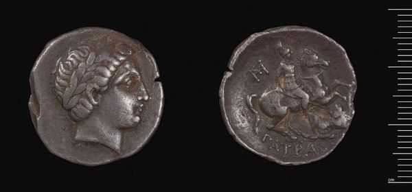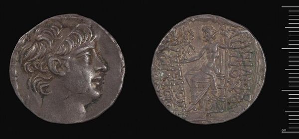 Editor: This is a silver Tetradrachm of Alexander the Great from Arados. It feels heavy with history. What can you tell me about its significance? Curator: Consider the power dynamics. Alexander, immortalized on currency, wasn't just a ruler but a figurehead. How does this coin contribute to the construction of his image and authority, especially concerning the public’s perception? Editor: It's propaganda then, in a way? Curator: Precisely. Money talks, even then. Now imagine its circulation, solidifying Alexander’s image in every transaction. Does that change how you view its purpose? Editor: Absolutely. It's not just art; it’s a statement about power. I hadn't thought about the everyday impact before.