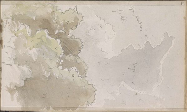 Editor: This is "Burgruine in Gewitterlandschaft," or "Ruined Castle in a Stormy Landscape," a drawing in ink on paper by Theodor Verhas. The scene is quite dramatic, with the lightning in the background, it seems almost ominous. How would you interpret this work, focusing on its formal elements? Curator: Formally, the composition emphasizes a dynamic tension between the decaying architecture and the chaotic energy of the storm. Notice how the artist uses line to create depth and texture; the meticulous hatching in the foreground contrasts sharply with the washes of ink that suggest the turbulent sky. What does that juxtaposition imply for you? Editor: Well, the distinct textures almost create a visual metaphor for decay, a battle between man-made order and nature. Do you think the monochrome palette also plays a role in this contrast? Curator: Indeed. The limited color palette simplifies the visual field, directing our attention to the gradations of tone and the interplay of light and shadow. Consider, too, how the verticality of the ruin opposes the horizontal expanse of the landscape. Does this contrast reinforce the theme of Romanticism evident here? Editor: It does. The ruin’s vertical lines pull the eye upwards, yet it is fractured. This visual instability mirrored by the lightning emphasizes the sublime power of nature that Romanticism so valued. The lack of color adds to this stark and isolated effect of the work. Curator: Precisely. By examining the intrinsic visual components, we decipher a complex meditation on temporality and the overwhelming power of the natural world. How interesting that close attention to visual detail helps interpret an artwork’s overall theme. Editor: It is incredible. By understanding the use of line, texture and shape within this artwork, we can find greater meaning within the overall form, that goes beyond historical context. Thank you for elucidating this dramatic piece!