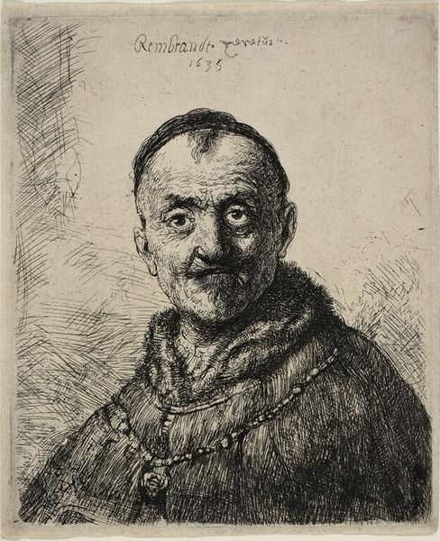 Jan Lievens made this etching of an old man wearing a skullcap sometime in the first half of the 17th century. The image presents an interesting tension between social commentary and artistic innovation. During the Dutch Golden Age, artists were increasingly commissioned by middle-class patrons. These patrons often wanted to see themselves and their values reflected in art. Prints like this, however, offered a more democratic form of art consumption. Lievens's detailed rendering of the man's aged features is striking. The man's clothing and heavy chain suggest he is a person of status, but the inclusion of naturalistic features was new. Was Lievens subtly critiquing the traditional norms of portraiture by focusing on an unidealized image? Was he trying to broaden the scope of who might be considered worthy of representation? To understand this piece better, we can research the print market in the Netherlands at the time and investigate the patronage networks that supported artists like Lievens.