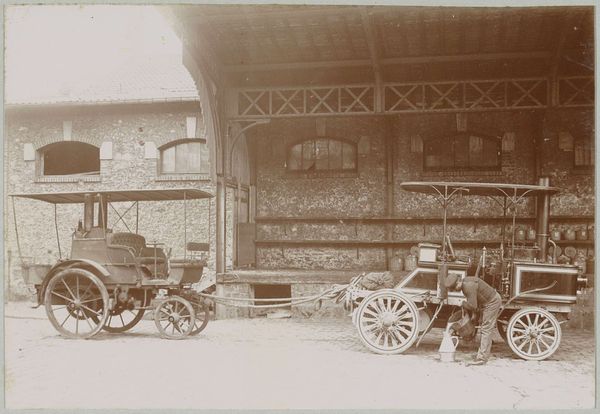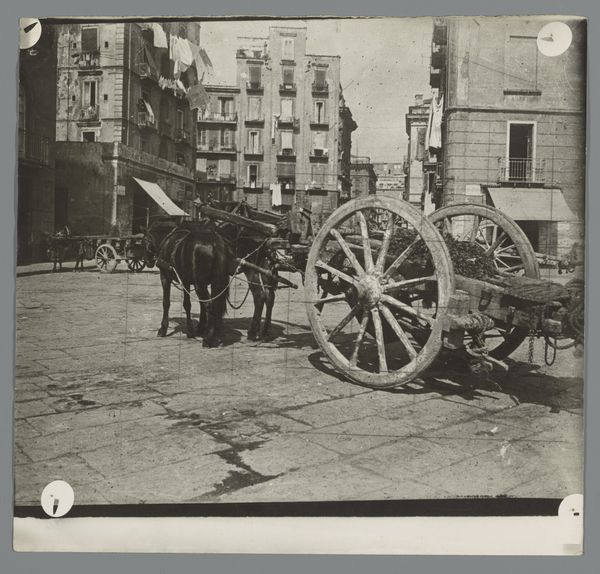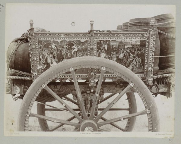 Curator: I’m immediately struck by how monumental this photograph feels; almost haunting, in a way. Editor: That's interesting. I find it almost celebratory, like a prize placed on display. What we're seeing is a photograph taken between 1858 and 1861 by John Constantine Stanley. It’s called *Great Sikh Gun taken at Ferozshah on the Night of December 21, 1845, Government House, Calcutta.* Curator: Government House…it's an imposing setting, isn't it? You have that slightly oppressive colonial architecture as the backdrop, and then this... enormous gun taking center stage. Editor: And notice the scale! Stanley positioned the camera to really emphasize the gun’s volume and material presence. Look closely at the wooden wheels; the details preserved through photography make you imagine the craft, the joinery, the people power needed to move it. Curator: It really speaks volumes about power and dominance, doesn’t it? This captured artillery piece – a trophy of sorts. It makes me think of all the labor, not only the military actions implied, but the actual work involved in the mining, smelting, and transportation of these materials for warfare. It just feels loaded with meaning…quite literally, I suppose. Editor: Exactly. And consider how the materiality of the gun itself – the weight of metal, the precisely engineered barrel – contrasts with the rather airy, decorative details of the Government House façade. It's a juxtaposition that throws colonial authority and technological warfare into sharp relief. It feels…ominous. Curator: Ominous is the perfect word. And in placing the gun on a pedestal, you're shifting it from battlefield utility to static display. We, as viewers, are asked to observe it with a sense of…awe, perhaps, or even… fear. Editor: Or maybe, and I like this, it is meant to instill order by recontextualizing how these objects of conquest get circulated – transformed from active artillery to object for public art photography. Curator: Indeed. It's a complicated photograph, steeped in history and implications about those violent 19th-century colonial endeavors. The layers of labor, craftsmanship, conflict—captured for all time through a lens.