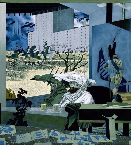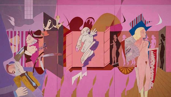 Ivan Eyre made this large painting, Dragon Head, and when you look at the surface, the colour choices, it feels like he's not just depicting a scene but inventing a world, bit by bit. Look at the muted tones, they are earthy and kind of dreamlike. It is thin paint, like watercolour, but it builds up these layers that give it a real presence, a weight. See the way the white lines cut through everything, like a design laid over the top? It's like he's mapping out connections, drawing us into this strange world. Eyre reminds me a bit of Philip Guston, someone else who wasn’t afraid to let his imagination run wild and use painting as a way to explore the absurd and the profound.
