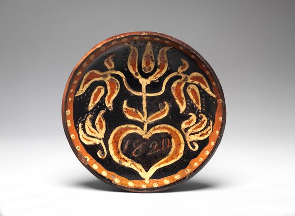 This earthenware plate was crafted by Solomon Grimm in the early 19th century. At its center, a stylized tree of life sprouts, flanked by avian forms and crowned with a geometric flower. The tree of life is an ancient motif, a cosmic symbol stretching back to Mesopotamia and Egypt. We see it mirrored in Judaic and Christian traditions as well. Here, it is reimagined as a symbol of growth, regeneration, and connection. The stylized birds evoke the soul's journey, a theme present in various cultures. The pair often acts as a psychopomp, guiding the soul. Similarly, the flower at the tree's summit is also a symbol of enlightenment and rebirth. The plate’s vibrant colors and symmetrical balance capture this human impulse to find harmony and meaning in the natural world. This reflects the eternal quest for understanding our place in the cosmos, resonating across time and cultures. The powerful symbols echo in our collective unconscious. The plate serves not just as a domestic object but as a testament to the enduring power of symbols.