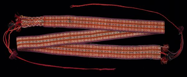Editor: Take a look at these girl’s leggings! Created around 1890 by an A’aninin (Gros Ventre) artist, they’re a striking pair of cotton textiles covered in beadwork, held at the Minneapolis Institute of Art. There is such beauty and careful precision, yet they were made for play. What stories do you imagine these hold? Curator: Stories whispered on the wind, stories stitched into every tiny bead! You know, seeing these leggings sparks my imagination, sends me tumbling back in time. They’re so much more than mere clothing; they're a canvas where geometry dances with intention. Imagine the patience required for this piece, the passing down of design elements, techniques, from mother to daughter. Editor: It is quite fascinating that this decorative art comes from the United States. How do these leggings speak to the relationship between adornment and identity, you think? Curator: Beautiful question. Consider the historical context – late 19th century. The A'aninin people were facing immense pressures, cultural disruption, yet their art persisted. Each color, each carefully placed bead, becomes a statement of resilience. A silent assertion of identity that says "We are still here." And the abstraction! A gorgeous counterpoint to a natural world being suppressed. Don’t you feel it vibrates with that intent? Editor: Absolutely! It’s like a coded message that transcends its functional form. It really reframes my understanding of “decorative art," making me consider cultural value. Curator: Precisely. And perhaps understanding value means asking ourselves what is worth remembering. Art allows conversations between generations; even more it allows for the creation of a legacy that transcends what can be held in any historical record. Editor: Thank you, these textiles hold so much beauty and power; it helps me remember the cultural history as I develop as an artist and person. Curator: Indeed. These little leggings aren't just something to be viewed, but experienced as an echo of love, pride, and unyielding spirit.