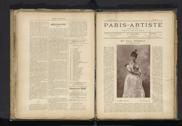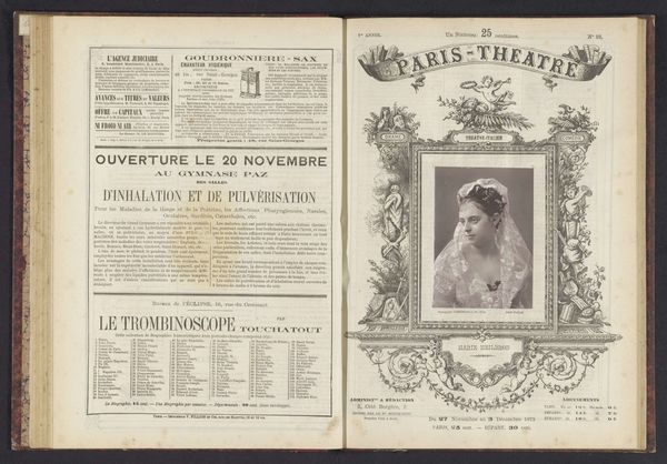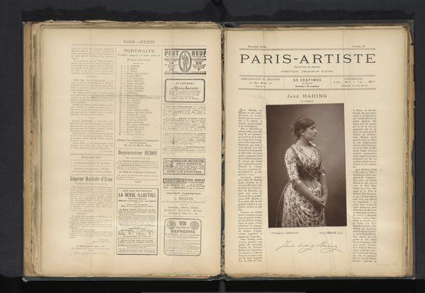 This photographic print, by Edouard Grauwet, presents us with a portrait of Madame Bade amidst advertisements and theatre schedules. The stylized border features the face of a woman, possibly a muse of theatre or a personification of the arts. The figure is reminiscent of ancient water nymphs, projecting an aura of feminine creativity and inspiration. Such figures draw from a deep well of cultural memory, recalling similar figures in classical antiquity who embody nature and inspiration. Consider how this motif has evolved, from the sacred nymphs of ancient Greece to the allegorical figures in Renaissance art, and now, here, as a decorative element in commercial advertising. This trajectory illustrates the enduring power of certain archetypes and their ability to resurface in new contexts, charged with different meanings. These symbols engage viewers on a subconscious level, evoking a sense of beauty, mystery, and the enduring power of the feminine. The recurring presence of these artistic motifs reveals a non-linear, cyclical progression, constantly reshaped and re-contextualized across the ages.