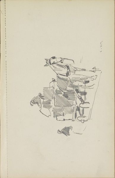 This work, Figuurstudies, was made by George Hendrik Breitner using graphite on paper. Breitner's choice of materials is particularly striking here. Graphite, a humble material, contrasts with the more celebrated oil paints favored for formal portraiture. The quick, gestural lines suggest an immediacy, capturing fleeting impressions rather than polished likenesses. Notice how the artist uses varying degrees of pressure to create depth and shadow, hinting at the forms beneath the clothing. This choice speaks to the artist's interest in portraying everyday life and the working class, rather than idealized or romanticized figures. The sketch-like quality emphasizes the labor and process of artistic creation. This approach challenges traditional notions of art as a purely aesthetic pursuit, highlighting the social and economic context in which art is made. By focusing on the everyday and employing accessible materials, Breitner democratizes art, making it relevant to a wider audience.