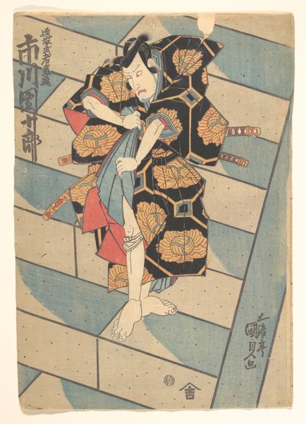 Shunbaisai Hokuei created this woodblock print depicting Nakamura Shikan II as the fox Genkurô in the play ‘Hanayagura hitome senbon’ at the Naka Theater. The play takes place in a very specific moment in Japanese history: the Genpei War in the late 12th century, which was a conflict between the Taira and Minamoto clans for control of Japan. Here, Nakamura Shikan II is dressed in an elaborate costume, representing not just a character, but a being that transcends the human form. Notice the actor’s exaggerated expression, a hallmark of kabuki theater, which conveys a sense of drama. The fox is a popular figure in Japanese folklore, and is often seen as a trickster, with the ability to shapeshift. Hokuei captures the emotional intensity of the performance. What do we make of the portrayal of mythical figures on the stage? How does the intersection of folklore, performance, and identity invite us to reflect on our own perceptions of reality and illusion?