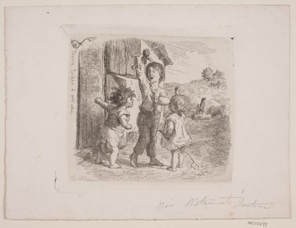 This sensitive etching, *Aftenstunden*, was rendered by Adolph Kittendorff in the 19th Century. It captures a scene of rural life in which labor, nature, and domesticity entwine. Note the plowman with his oxen, a motif that dates back to antiquity, seen in the myth of ploughing with a bull. The act of ploughing—breaking the earth— is an ancient symbol of renewal, the vital act of preparing for new life. Consider the figure's pose, head tilted slightly upwards. This reminds us of depictions of ecstasy, as seen in religious paintings of the period. Such enduring motifs reveal how deeply the human experience is intertwined with the rhythms of nature and labor. Through Kittendorff's rendering, the plowman transcends the temporal realm, resonating with primal, universally understood gestures of renewal.