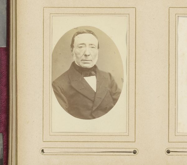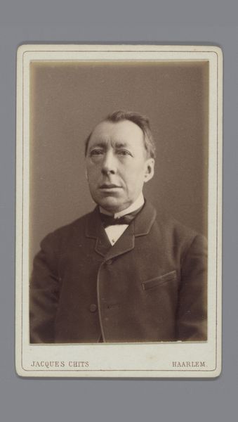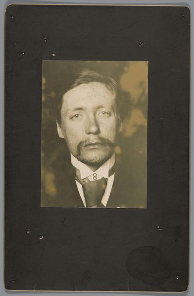 Editor: Here we have "J.J. Witsen," a gelatin-silver print dating from around 1860 to 1915. The tones are beautiful but faded. It's quite a direct portrait. How do you interpret this work in light of the social context of the time? Curator: This portrait speaks volumes about the power dynamics inherent in representation, even within a self-portrait. Willem Witsen, positioned as both subject and author, wields control, but it is control informed by the norms of his era – the gaze he directs back at the viewer is one framed by class and masculinity. Do you notice anything about the photographic process itself, and how it reflects the rapidly shifting social landscape of the late 19th century? Editor: I see that the sepia tones and aged paper suggest a longing for the past, but his forward stare seems pretty modern and assertive. Curator: Precisely. And who was photography accessible to at this time? Think about the burgeoning middle class and the democratization of image-making. How might Witsen be consciously crafting his image in response to, or in defiance of, those shifting tides? It’s crucial to understand this portrait, not just as an image of an individual, but as a complex negotiation of identity within a specific historical moment, including gender. The formality, the composition…it’s all a statement, isn't it? Editor: Definitely. I never thought about photography itself being part of a power play, about who is behind the camera and how it reflects societal shifts. Curator: Art provides the lens through which we critically examine such negotiations. The beauty of this portrait lies in its capacity to invite us to question those norms and challenge the historical narratives of which art and images are complicit. What new questions does the work raise for you?
