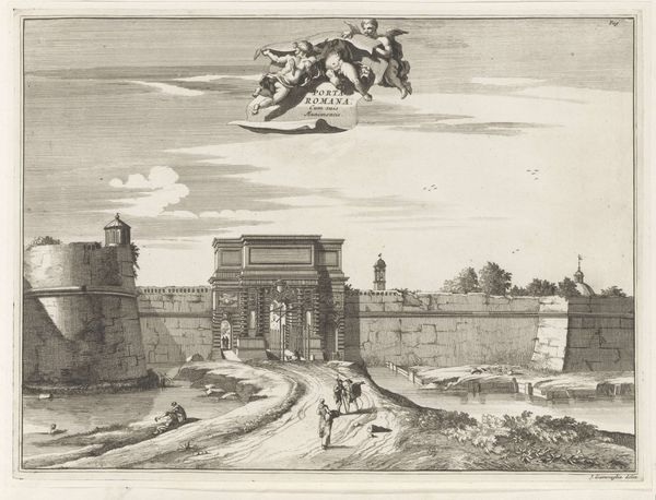 Curator: My initial reaction is how vividly this detailed yet diminutive scene portrays conflict, capturing the chaos with its multitude of tiny lines. Editor: Indeed. What we're looking at is an engraving from 1647, titled "Ildkamp mellem persere og europæere," which translates to "Fire Fight Between Persians and Europeans". This work, currently held at the SMK – Statens Museum for Kunst, comes to us from an anonymous artist. The scene is an intricate study in contrast, pitting two cultures against each other through the relatively new Baroque lens. Curator: It is more than just a clash. See the way the figures atop the buildings mirror each other; a continuous echo of struggle. One might interpret this recurring pattern to symbolize a deeper ideological battle, showcasing civilization at war with itself. Is this conflict cyclical? Inevitable? Editor: The artist does orchestrate a dynamic spatial organization. Note how diagonals slice across the scene, propelling our gaze. This active composition works in tension with the static architectural elements; those formal lines of buildings and wall appear so solid amidst all the violence. It certainly lends the whole a dramatic baroque air. Curator: And those architectural components function symbolically. The buildings—ostensibly European—tower in linear perspective; but juxtaposed against a chaotic clash happening below, aren’t we perhaps presented a not so confident view of the future of Europe in 1647? It speaks of precariousness despite the apparent power. Editor: I agree the artist has masterfully imbued these elements with connotative power; it shows the enduring possibilities latent within simple formal relationships when deployed deliberately. The high contrast is a real achievement, especially given the graphic, illustrative quality from its execution in a print form. Curator: Engravings are interesting from that cultural perspective—intended for reproduction, it allows for broad circulation. This choice of subject matter and graphic medium suggests that this 'fire fight' resonated, tapped into collective anxieties around clashing empires. Editor: Indeed. By framing the struggle through composition and contrast, the artist seems to invite the audience to interpret more than just the surface event, revealing enduring historical and psychological fault lines. Curator: Precisely, revealing both the historical and psychological landscapes of conflict.