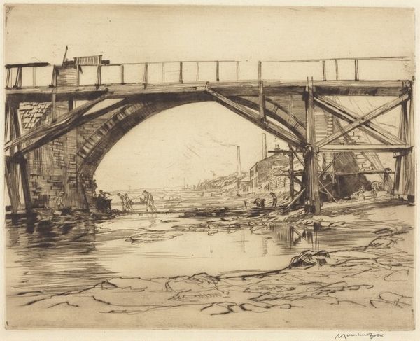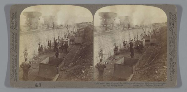 This photograph by Louis Eugène Vassogne captures a wrecked German locomotive at Le Theux bridge, during the Franco-Prussian War of 1870-71. It's a humble albumen print – a common photographic process at the time – but the image it bears speaks volumes about the impact of industrialization on warfare. Consider the materials: steel, stone, water. The locomotive, a symbol of German industrial might, lies crippled amidst the solid stone of the bridge – also built by human hands. The force required to destroy such an object is immense, hinting at the scale of destruction that modern warfare could unleash. Look at the men gathered on the bridge, small against the backdrop of destruction; they are the witnesses and perhaps perpetrators of this industrial carnage. The image reminds us that even the most advanced technologies are vulnerable, and that war always leaves its mark on the physical landscape, and on human lives.