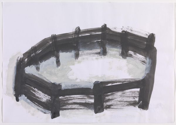 Drawing is important in Barlow’s practice, and central to an understanding of her sculptural work. These drawings span a period of more than twenty years. They embody the same ambiguous nature as Barlow’s sculptures and represent the range of her sculptural vocabulary, which includes racks, arenas, greengrocer’s crates, crumpled canvases, strange furniture wrapped around with soft materials, and the layering, accumulation and juxtaposition of ambiguous objects and shapes. Made with thick, gestural brushstrokes, the drawings retain spontaneity of feeling and vitality. Across the group, similar marks are repeated and developed, suggesting solid forms and hinting at familiar shapes. Gallery label, October 2013