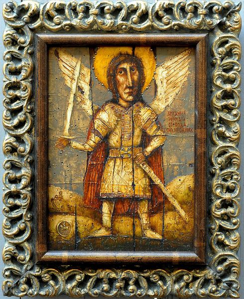 Oleh Denysenko created this head with an unknown medium and date, featuring a mustachioed man with piercing blue eyes. The man's mustachios are striking. Like tendrils, they evoke ancient depictions of power and virility, echoing the stylized beards of Assyrian kings, symbols of authority and dominance carved into stone. This symbol resonates across time, appearing even in 19th-century portraits of European monarchs. But note how here, they have been somewhat deflated. Does Denysenko seek to revive the archetype, or to question and subvert it? The cracked surface lends the image a quality of age and fragility, as if it were a relic unearthed from a forgotten time. Symbols, you see, are never fixed. They traverse history, accumulating layers of meaning, always in flux.