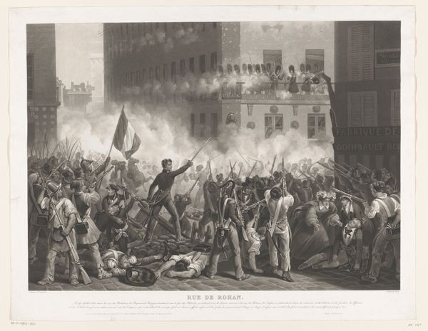 Jean Pierre Marie Jazet created this print of the attack on the city hall during the July Revolution. It depicts a moment of intense conflict, dominated by the French flag—a powerful symbol of liberty, equality, and fraternity. This tricolor banner is reminiscent of classical antiquity's standards and banners. Think of the Roman legions, whose symbols rallied troops and instilled a sense of collective identity and purpose. In this print, the flag serves a similar function, uniting the revolutionaries in their cause. Observe the wounded figures in the foreground. They evoke the pathos-filled imagery of martyred saints, reappearing in countless artworks throughout history. Such emotional appeals have a profound effect on viewers. They tap into our collective memory, stirring feelings of empathy and solidarity that transcend time. Indeed, the symbolism in this print is not confined to the July Revolution. It echoes through history. It resurfaces, evolves, and takes on new meanings in different contexts.