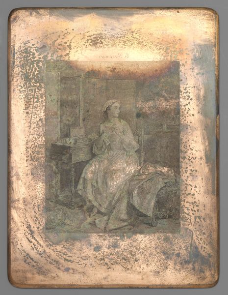 Curator: Looking at "Frison Nordhollandais, et Jeunefille de Groningue," dating from 1802 to 1855 and currently residing in the Rijksmuseum, what strikes you first? Editor: There’s a spectral quality, almost ghostly. The image seems to emerge from the aged surface, particularly the figure in the background, lending a melancholic air to the whole scene. Curator: Indeed. Knowing that it is rendered using pencil and colored pencil adds a layer of intrigue. Consider the artist's choice to portray these regional identities—a Frisian woman and a young woman from Groningen. What might this pairing signify in terms of social dynamics or representation at the time? Editor: Visually, the textures created through layering of pencil strokes give form and volume, a sort of trompe l’oeil effect despite its relative simplicity. The floral patterns and lace details read as ornamental gestures that soften the overall impression. Curator: Perhaps these are deliberate aesthetic decisions to offset underlying complexities. The depiction of regional identities within a rapidly changing social and political context speaks volumes. These aren’t merely images; they are assertions of cultural heritage at a time of significant societal shift, particularly concerning women's roles. Editor: Absolutely. One might say that it’s the stark contrast of texture with an almost nonexistent color palette which invites us to find nuances in the romantic depiction of ordinary people. Curator: Precisely, this piece opens up conversations about representation and identity politics in the early 19th century, underlining art’s vital role in both reflecting and shaping societal perceptions. Editor: It encourages us to look beyond simple depiction and think about how artistic elements intersect with deeper questions about who gets remembered and why.
