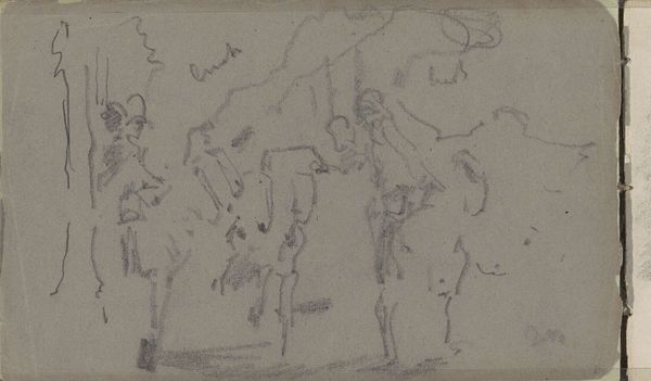 Curator: This is "Sketches from a Bullfight; verso: Designs for Ornament" by John Singer Sargent. Editor: It has such energy, even in these faint pencil lines. You can almost feel the frenetic movement of the bullring. Curator: Indeed. Notice how Sargent captures the dynamism of the scene through rapid, gestural marks. The composition directs our eye through a carefully orchestrated chaos. Editor: It also makes me think about the cost of bullfights, both economically and ethically. What was Sargent trying to say about the spectacle, and the labor of the people involved? Curator: Perhaps he was less interested in social commentary and more captivated by the purely visual spectacle. Editor: Perhaps. Either way, it's a potent reminder of the varied ways we experience and depict cultural events. Curator: A fascinating divergence of form and function.