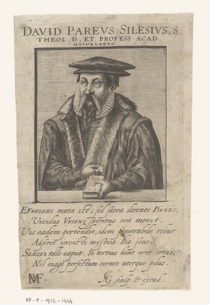 Curator: This engraving, dating from the late 17th or early 18th century, portrays Rodolphus Schwendius, a senator and consul of Thuringia, who lived from 1365 to 1391. It's an intriguing piece, capturing a figure of power and influence through the formal language of Baroque portraiture. Editor: My first thought? The intensity in his profile—almost severe! It’s stark, you know? The fine lines giving a real sense of texture, especially the folds in his robes and that determined little smirk he has. Curator: Precisely! It situates Schwendius within a lineage of civic leaders and power brokers. The engraving's formality, combined with the Latin inscription below his image detailing his accomplishments, works to cement his place in Thuringian history. It also touches on the fascinating evolution of public memory and its relationship to elite social strata during the late Renaissance. Editor: Oh, absolutely. Check out the coat of arms! Talk about symbolic power—that emblem speaks volumes about heritage, family status, maybe even political allegiances back in the day. I bet Schwendius would be quite tickled pink knowing we are all here talking about him now, centuries later! Curator: I concur. This kind of portrait functioned as both a commemoration and a propagation of authority. Beyond his status, considering this work through the lens of printing technology shows us how visual culture participated in solidifying ruling class narratives, subtly promoting ideologies of leadership. Editor: Looking at how those robes hang—it's all lines, right? Those tiny marks creating a grand, velvety effect...The artist must have had a thing for capturing fabric texture and light. A tangible, enduring legacy crafted just with simple marks and tone. I mean, the artistry is subtle but undeniably captivating, you know? It's just...fascinating. Curator: Indeed, and reflecting on such artistry also lets us discuss how art mediates understandings of socio-political power, the impact of reproducible media like prints, and even the very concept of enduring fame. Editor: Right? After taking another, good, long gander here, I find it absolutely inspiring how historical context can suddenly give depth and dimension to a simple little portrait. Curator: A fruitful reminder that historical portraiture contains multiple threads that tie us back to a very different historical moment!