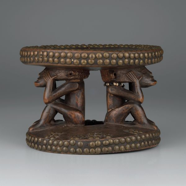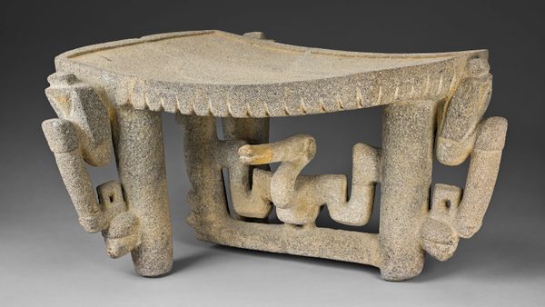 This Ceremonial Grinding Table, or Metate, was made by the Nicoya people, and is an example of ancient pottery. It’s made with a distinctive reddish-brown clay, formed into a feline shape with intricate geometric patterns on the legs. The choice of clay as a material, and the labor-intensive process of shaping and firing it, speaks volumes. The Metate embodies the ingenuity and skill of the Nicoya people. The smooth, curved surface of the table shows its primary function: grinding grains. But it’s also decorated with a feline head, an important motif, suggesting the Metate’s significance goes beyond basic food preparation. It's likely to have been used in rituals, connecting the everyday act of making food with spiritual beliefs. Looking closely, you can see how the texture of the clay and the imprints of the maker's hands contribute to its unique character. This challenges our traditional notions of art, and elevates the status of functional objects made with craft and care.
