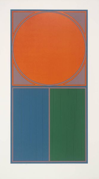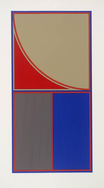Editor: So, this is Gordon House’s "Arc D" from the Tate Collections. It's a print of geometric shapes and striking colors. I find the composition really intriguing – it's so clean and precise. What do you see in this piece, considering its historical context? Curator: "Arc D" really reflects the spirit of post-war abstraction, particularly its embrace by corporate entities. The clean lines and bold colors were readily adopted, weren't they, for public spaces and advertising, effectively democratizing art? Editor: So, the artwork's public role and politics of imagery were central? Curator: Absolutely. House’s work blurred the lines between high art and mass culture, posing questions about artistic value and accessibility that are still relevant in how we understand the role of art institutions today. Editor: That's a perspective I hadn't considered. Thanks! Curator: My pleasure. It highlights the museum's ongoing role in shaping and preserving these dialogues.