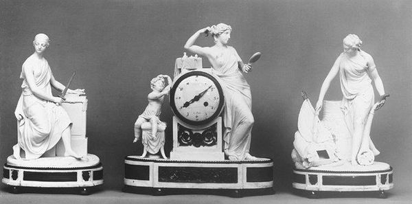 This clock was made by Drouot, in France, in the nineteenth century. This clock is a fascinating example of the era's obsession with antiquity, as well as being an expression of status. Its neoclassical style, with marble figures reminiscent of Greek gods, speaks to the cultural elite's admiration for the ideals of ancient Greece and Rome. Note how the male figure is nude, and how the female figure is draped in classical robes. These are visual codes that signaled refinement and education. The presence of a clock, however, brings us back to the nineteenth century and its emergent ideas of industrial efficiency and the measurement of labor time. The historian can draw on trade records, design publications, and other documents to shed light on the clock's cultural significance. In doing so, we understand how seemingly timeless art objects are embedded in social and institutional contexts.
